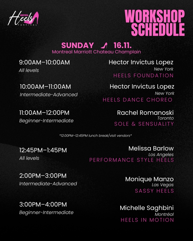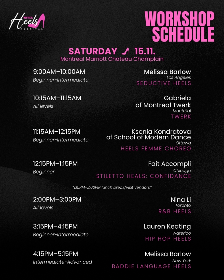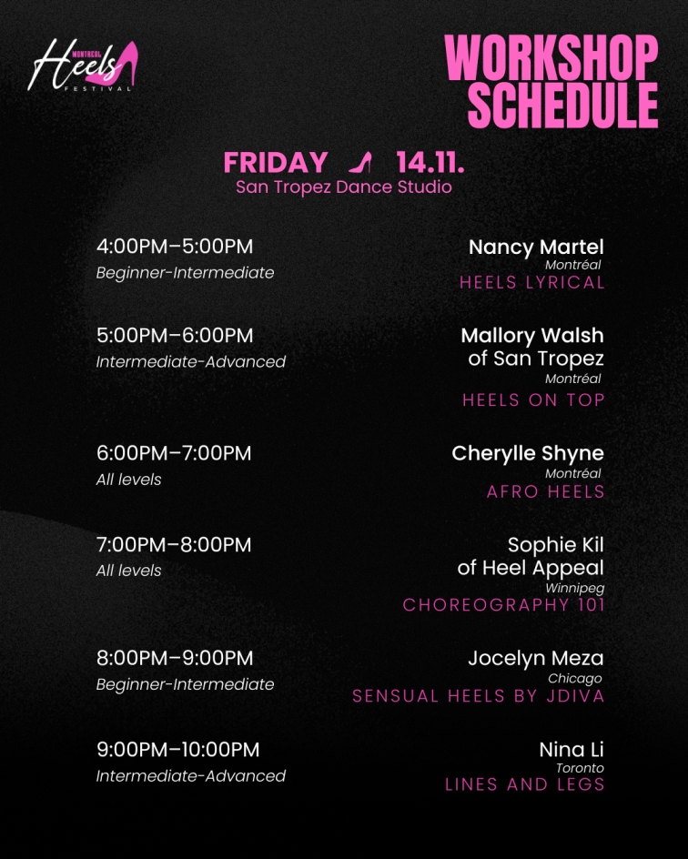 Note : No videotaping during classes. You can record at the end of the class. Nous nous réservons le droit de modifier les ateliers en tout temps. We reserve the right to make changes at any time.